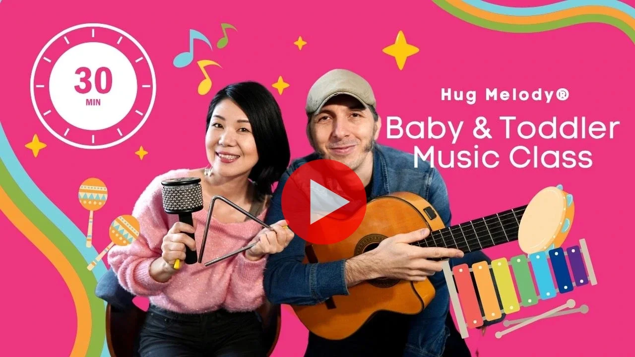 I created Hug Melody® Mommy & Me, with live acoustic music, original songs, and ample space for each child’s unique responses, our classes foster growth in ways that recorded music alone simply cannot.